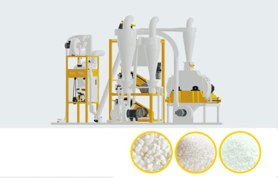 Planta de moagem de farinha de milho com moinho pneumáticoA planta de moagem de farinha de milho com moinho de rolos pneumáticos é integrada com todos os aspetos do fluxo, incluindo limpeza, condicionamento, degerminação, moagem e embalagem automática, que é adequada para processar farinha de milho grossa e grãos de milho.